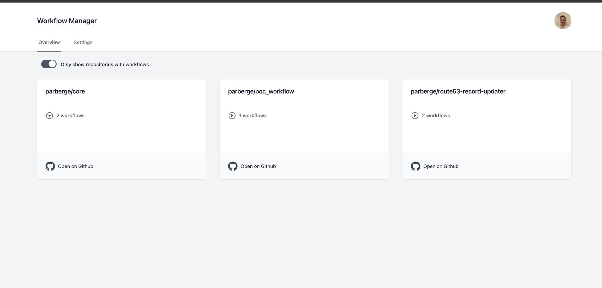 Workflow Manager is a web application that provides a user-friendly interface for scheduling workflows in Github. It uses Github's REST API to trigger workflows and Github's webhooks to listen for workflow events.